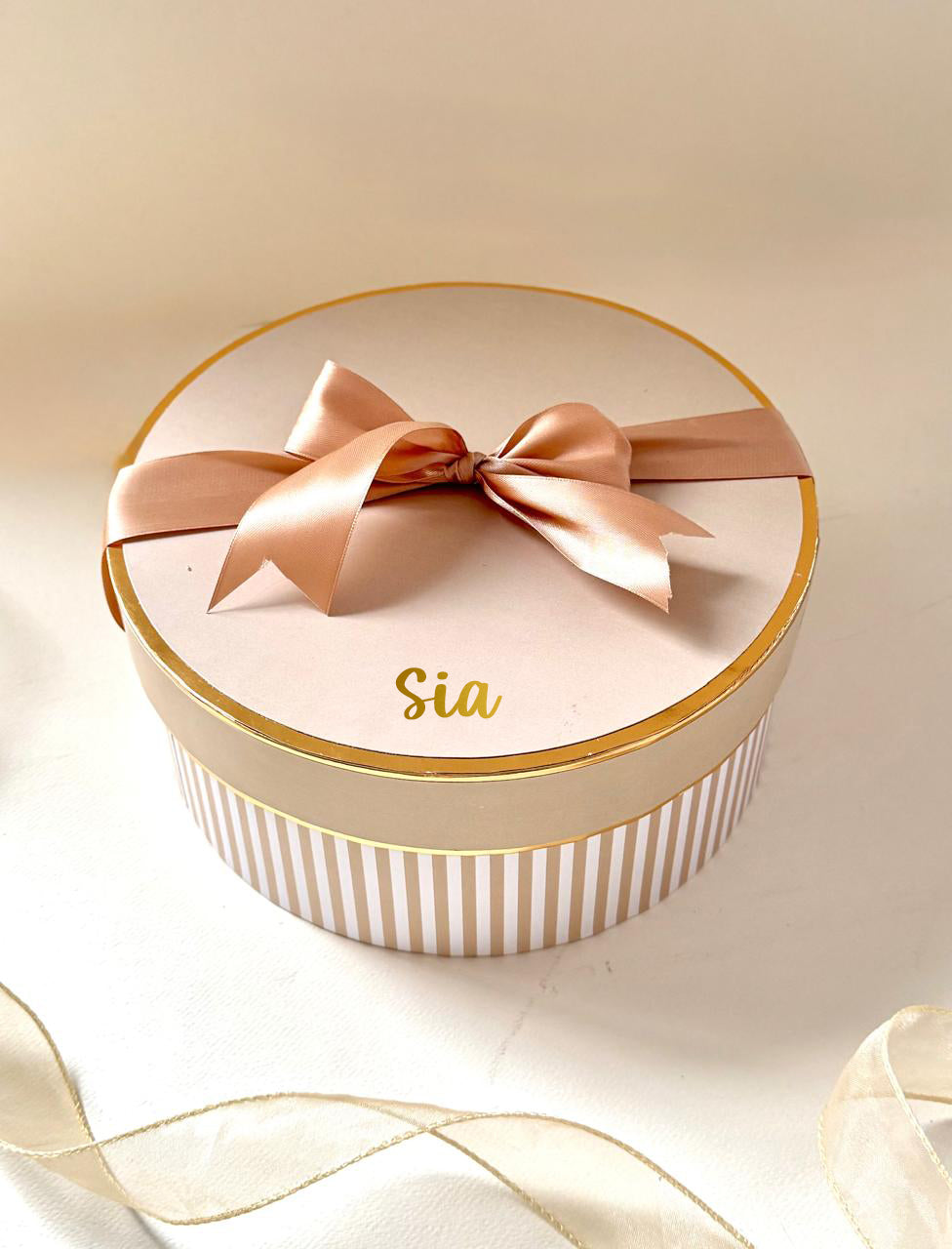 This elegant Beige Round Gift Box is a Rakhi surprise designed to pamper your favorite girl — be it your sister, cousin, or Bhabhi. With personalized touches, heart motifs, and self-care essentials, it’s the perfect blend of charm and utility.