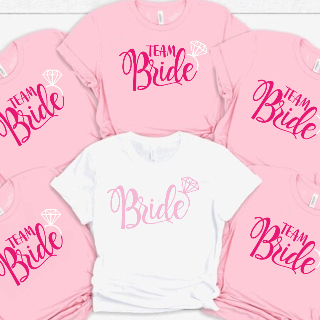Celebrate your squad in style with our custom-designed bridesmaid and bride t-shirts! These comfy, chic tees are the perfect way to bring your bridal party together—whether you're gearing up for the bachelorette bash, showing off your bridal squad at a pre-wedding brunch, or lounging after the big day.
