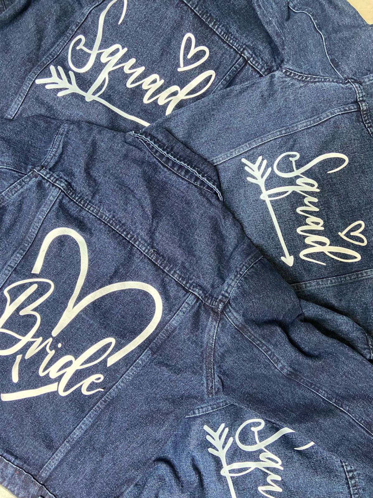 Customized Denim Jackets for Bridesmaids & Bride: Stylish & Personal Make your bridal party feel extra special with custom denim jackets designed to reflect their unique personalities and your unforgettable celebration. Our personalized denim jackets are the perfect combination of casual cool and bridal elegance, creating lasting memories while keeping everyone stylishly comfortable.