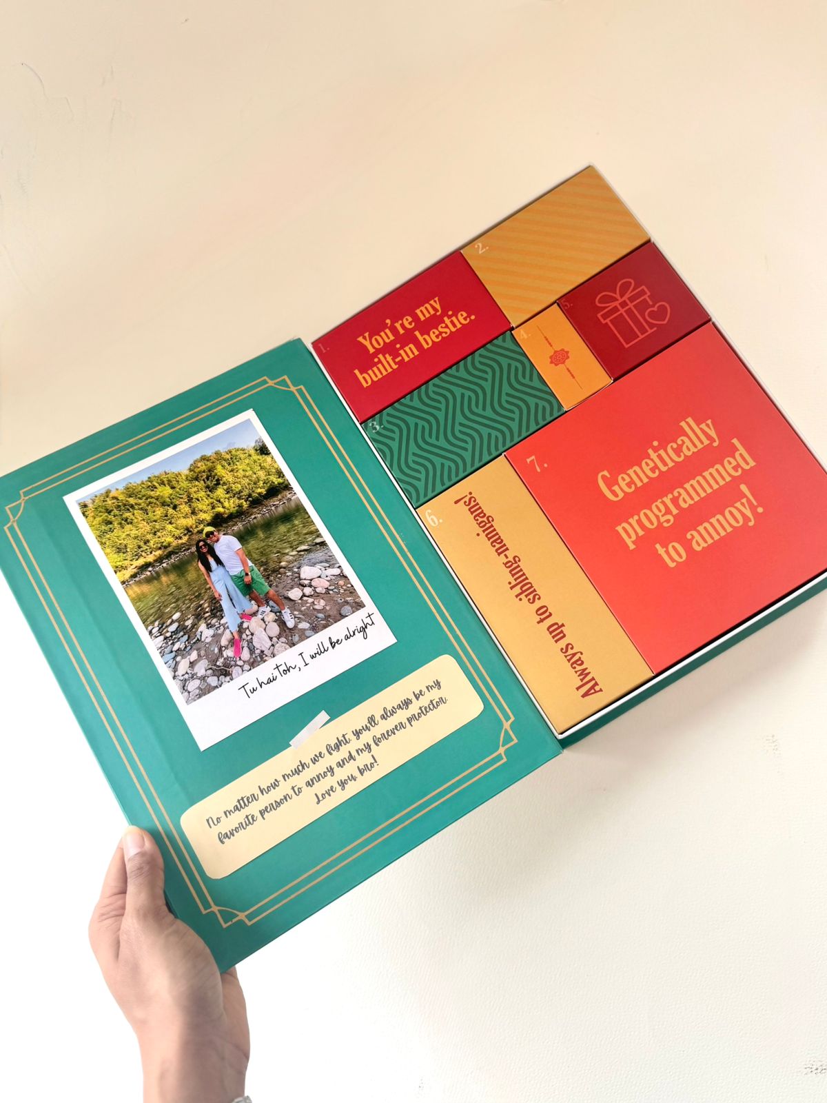 This Raksha Bandhan, we’ve turned nostalgia into a storybook. Presenting The Chronicles of the Best Siblings — a one-of-a-kind Rakhi hamper designed to look like a book, but filled with surprises instead of pages.