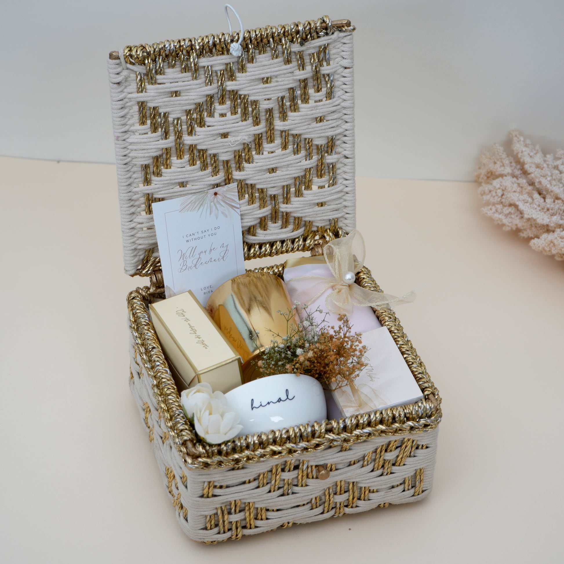 Timeless, thoughtful, and touched with gold—our White & Gold Luxe Box is the perfect gift for those who appreciate the little details. Beautifully packed in a premium, reusable box, this hamper combines cozy moments with chic custom touches—ideal for birthdays, bridesmaids, festive gifting, or just because.