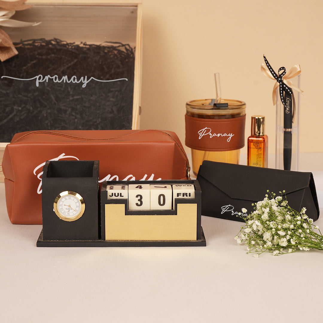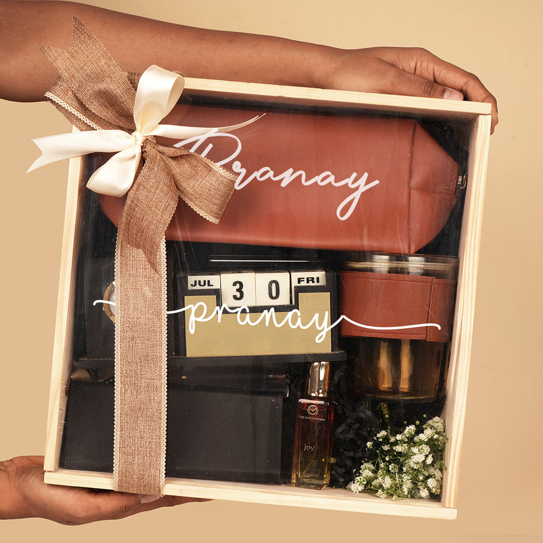 The slider box is a gift set features the best of the products for your father, brother, boyfriend or for your loved ones It comes in a reusable, personalized pinewood box with an acrylic lid. It can be personalised to his name, offering a sophisticated and memorable gift for your loved ones.